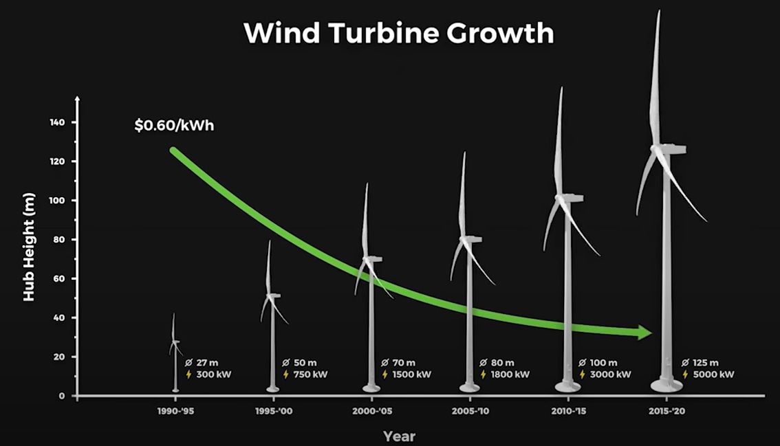 Naarmate windturbines hoger worden, neemt hun capaciteitsbenutting (in vollasturen) toe. Vervanging van een 1 MW windturbine door een 4 MW exemplaar levert daarom niet 4x, maar circa 8x meer hernieuwbare elektriciteit op Dat is goed voor het klimaat. De norm is nu 200 meter en hoger. Op land kiest men veelal voor kleinere molens. In Amsterdam geldt een hoogtebeperking van 150 meter vanwege de radarinstallatie van Schiphol. Daardoor zijn er veel meer kleine turbines nodig. Deze zijn alleen niet rendabel zonder extra subsidies. Marktgewijs een tranendal.