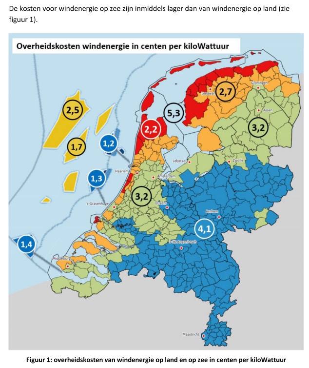 Op onderstaande kaart zie je ook dat hoe verder in het land hoe duurder het wordt. Omdat het daar minder waait. Wat is de logica om belastinggeld (subsidie) te besteden aan de exploitatie van achterhaalde bedrijfsmodellen? Turbines nabij woningen zijn veelal niet de exploiteren omdat ze vaak stil worden gelegd. In Houten weten ze daar alles van.